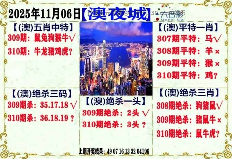 | 310期:五肖 | 猴虎羊狗龙 | 虎16中 |
